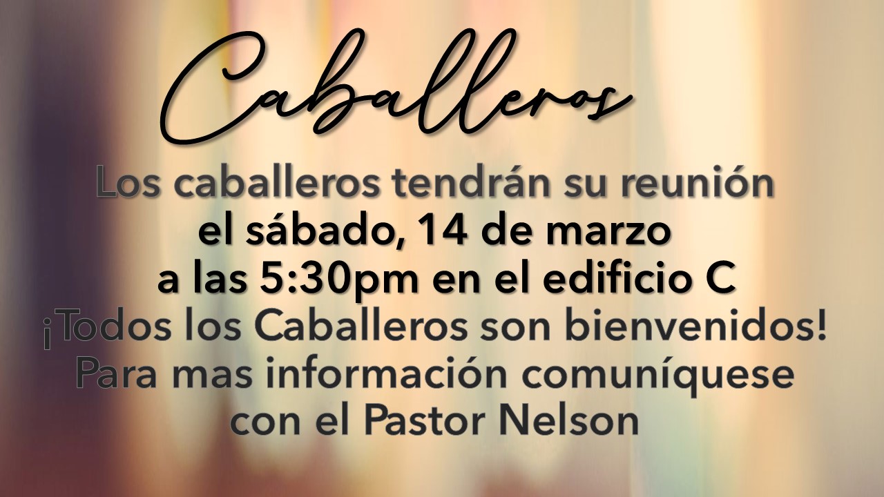 Participe en la reunión de Caballeros dos veces al mes. Para mas información comuníquese con los hermanos Edgardo Murillo, Delfino Contreras, o Nelson Panameño.